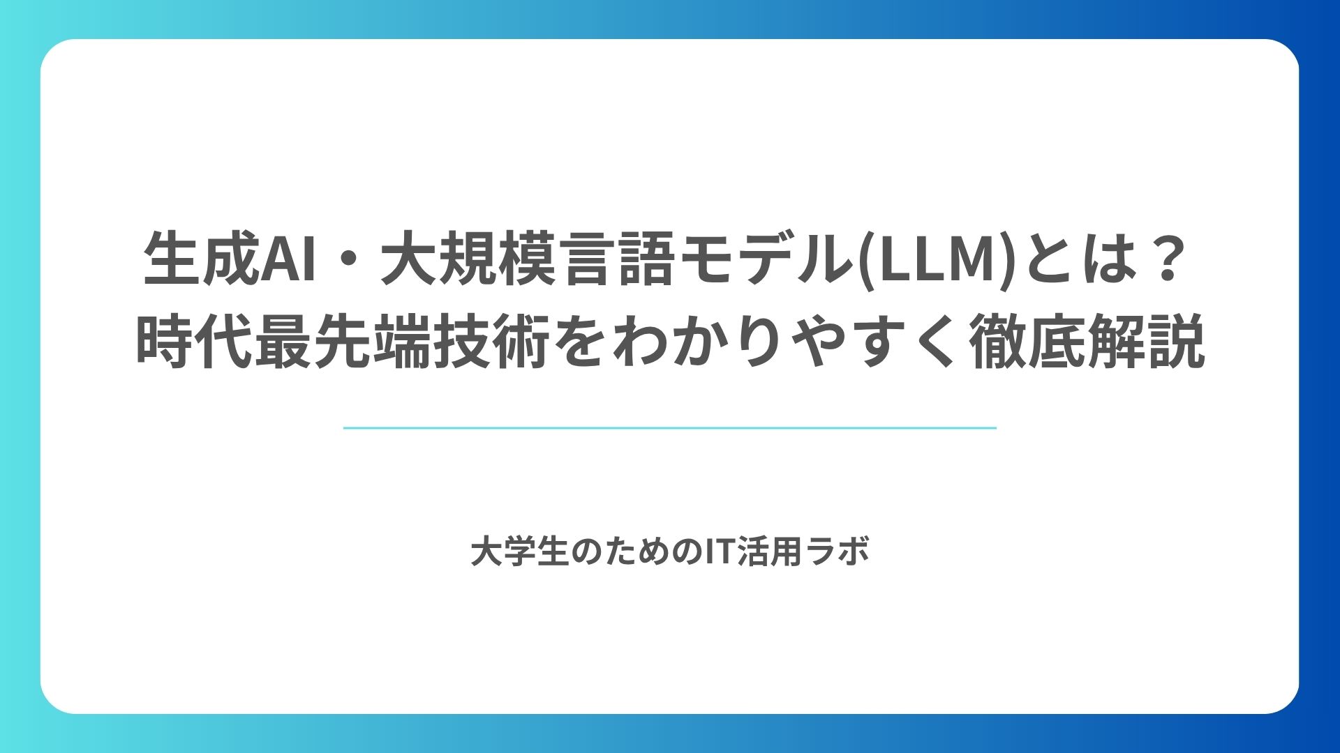 とても便利な反面、ニュースや授業で出てくる「LLM(大規模言語モデル)」や「生成AI」といった専門用語に、少し戸惑いを感じていませんか?